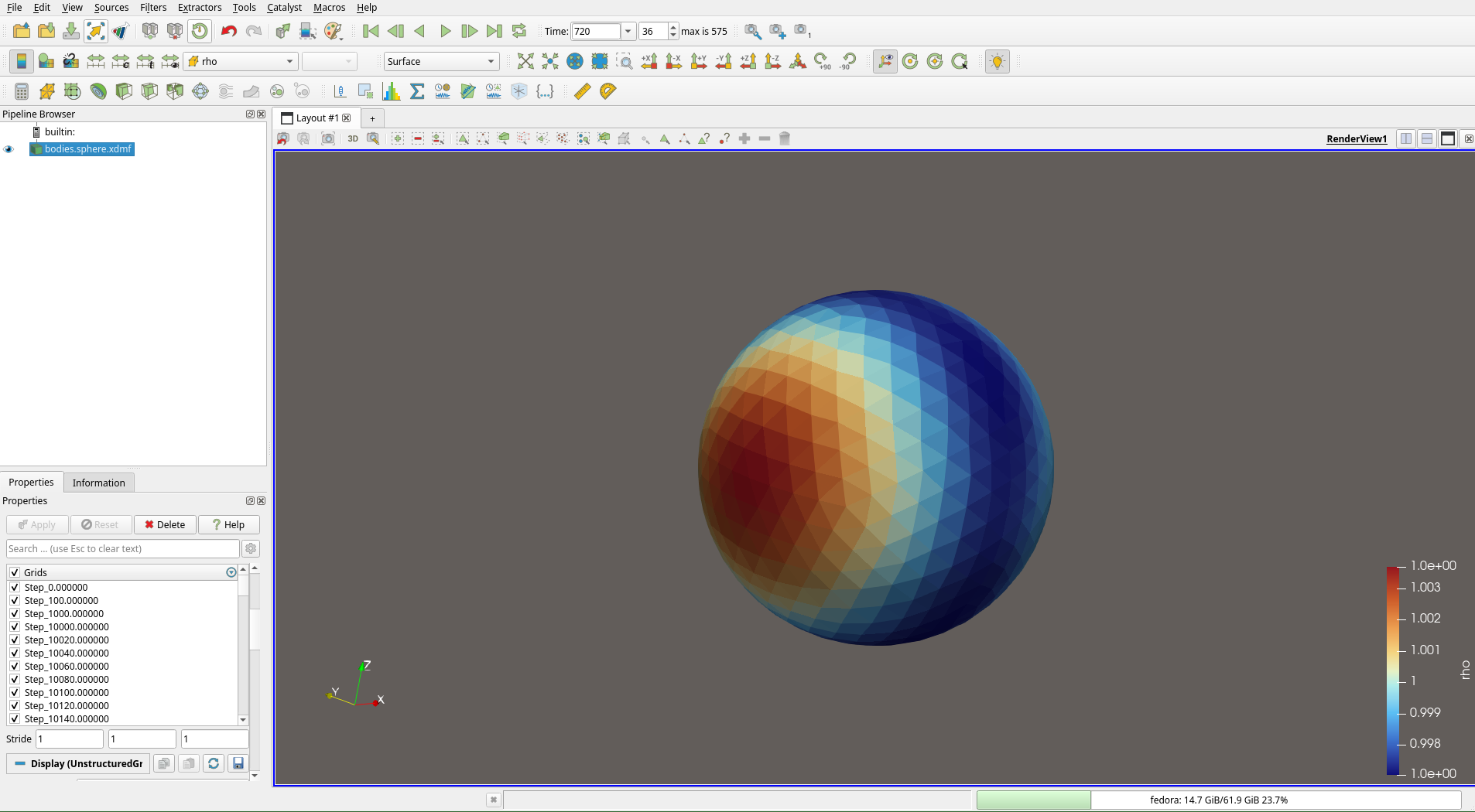 Body surface loaded in ParaView, coloured by pressure (cell data).¶